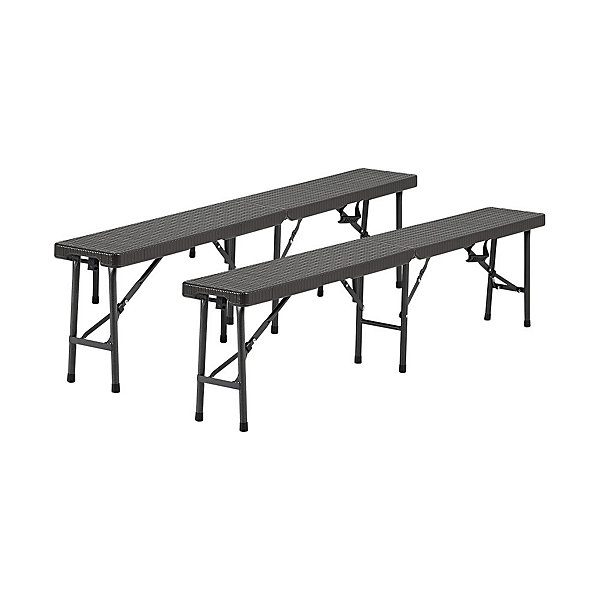 2Pcs Black Rattan Effect Plastic Outdoor Garden Folding Bench Set Portable with Carrying Handle 5.9ft
