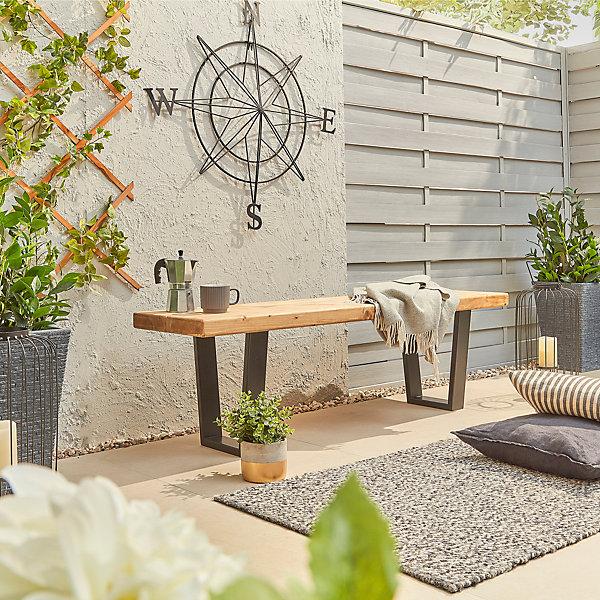 Wooden Garden Bench with Industrial Legs -Garden Furnituremade from Solid Wood- 2 Seater 120cm (L) Off the Grain