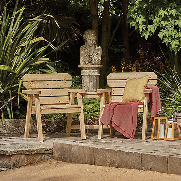 Woodshaw Thornton Wooden Rustic Alcove Companion Love Seat Garden Chair 2 Seater