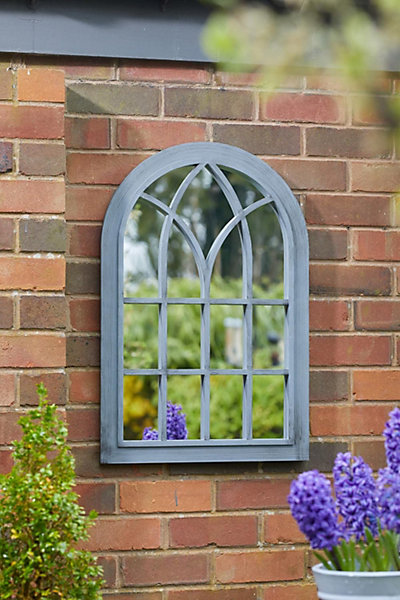 Annibells Large Grey Arched Window Gothic Style Wall Mirror(16614)
