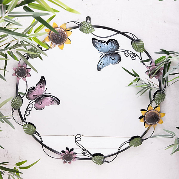 Annibells Metal Flower Butterfly Round Wall Mirror