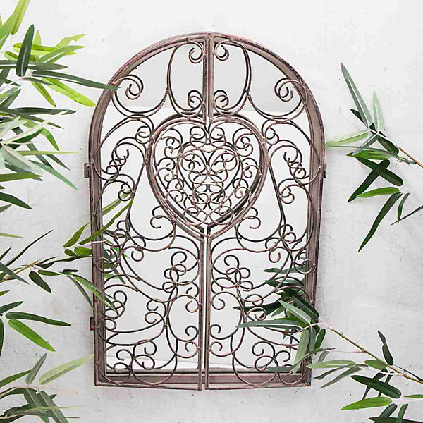 Arched Wall Hanging Metal Garden Decoration Windowpane Mirror 600 x 1000 mm