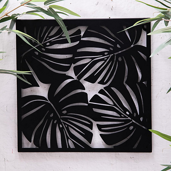 Annibells Square Black Metal Palm Leaf Wall Plaque (14403)