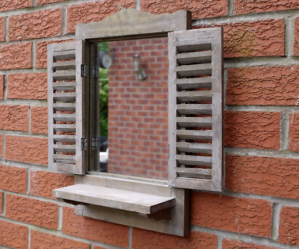 Annibells Wooden Wall Mirror Window Shutter with Shelf (1663)