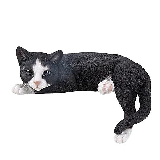 Vivid Arts Real Life Laying Black and White Cat Garden Ornament