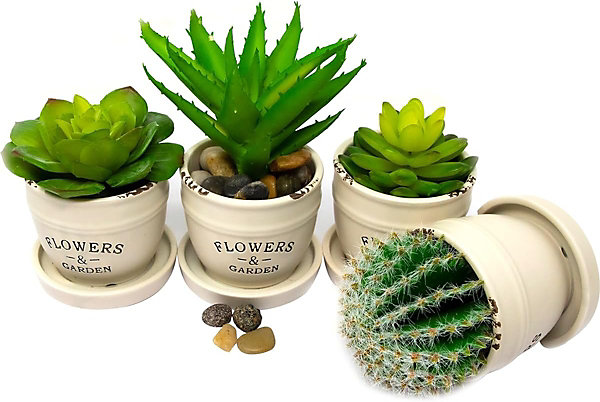 2 X Ceramic Flowers & Garden Pots With Succulents Plants Home Decor Xmas Gift