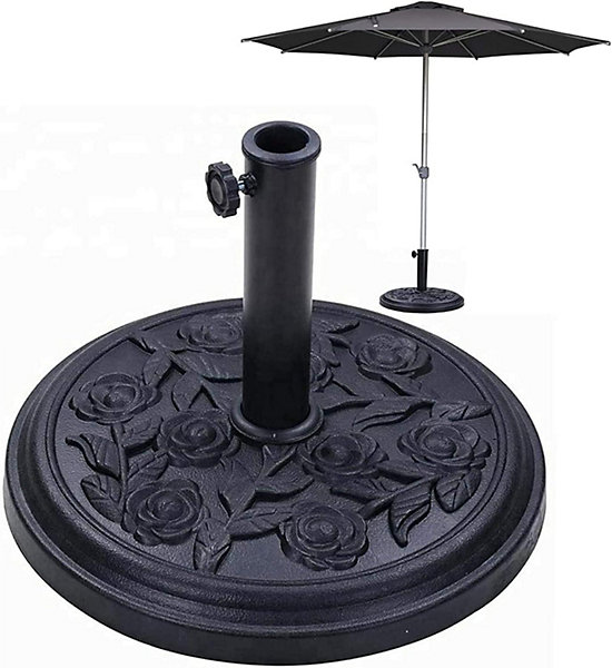 SunDaze 12kg Cement Concrete Cast Iron Effect Garden Parasol Base with Rose Design
